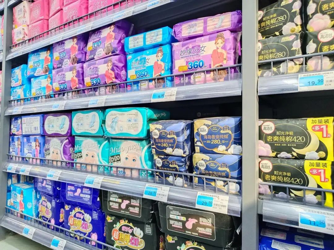 ▲2024年11月22日,江蘇宿遷,市區(qū)一家超市貨架上的衛(wèi)生巾 圖據(jù)視覺中國